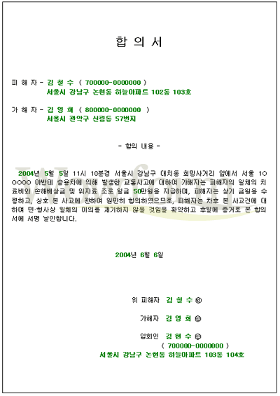 ½±°Ô ¸»Çؼ­ ÆøÇà¿¡ °üÇÑ »çÇ׿¡ ´ëÇÏ¿© ÇÕÀǼ­¸¦ ÀÛ¼ºÇÏ´Â °æ¿ì¿¡´Â °¡ÇØÀÚ¿Í ÇÇÇØÀÚ·Î ³ª´¶´Ù. ¶Ç »ç±â»ç°ÇÀÎ °æ¿ì¿¡µµ ¸¶Âù°¡ÁöÀÌ´Ù.
