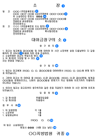ÇÇ°í¿¡°Ô û±¸±Ý¾×ÀÇ Áö±ÞÀ» ±¸ÇÏ´Â ±Ç¸®ÀÇ ±Ù°Å¸¦ ¹àÇô Àû´Â´Ù. ÀÌ ºÎºÐÀÇ ±âÀç´Â Áغñ¼¸éÀÇ ±â´Éµµ °¡Áö°í Àֱ⠶§¹®¿¡ û±¸¿øÀο¡ ±âÀçµÈ °ÍÀº ¿ø°íÀÇ ¼Ò¼Û»ó ÁÖÀåÀ¸·Î °£ÁֵȴÙ. û±¸ÇÏ´Â ±Ç¸®¿¡ µû¶ó ±âÀçµÇ´Â ±¸Ã¼ÀûÀÎ ³»¿ëÀº ´Þ¶óÁú °ÍÀ̳ª, ÀϹÝÀûÀÎ °øÅëµÈ Çü½ÄÀÌ ÀÖ°í, ±Ç¸®ÀÇ ¹ß»ý»ç½ÇÀ» 6ÇÏ¿øÄ¢¿¡ µû¶ó ±¸Ã¼ÀûÀ¸·Î ±âÀçÇÏ¿©¾ß ÇÑ´Ù.